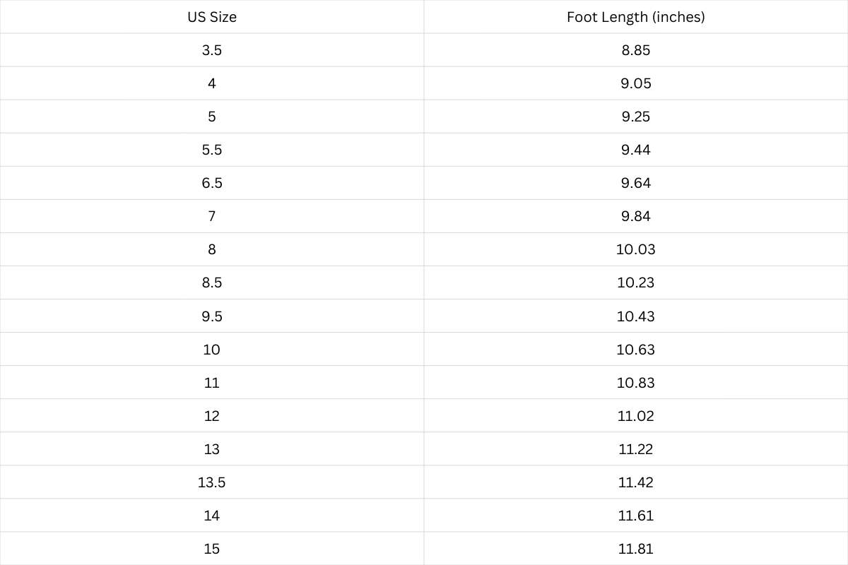 Note: If you are between sizes, we recommend sizing up for the best fit.