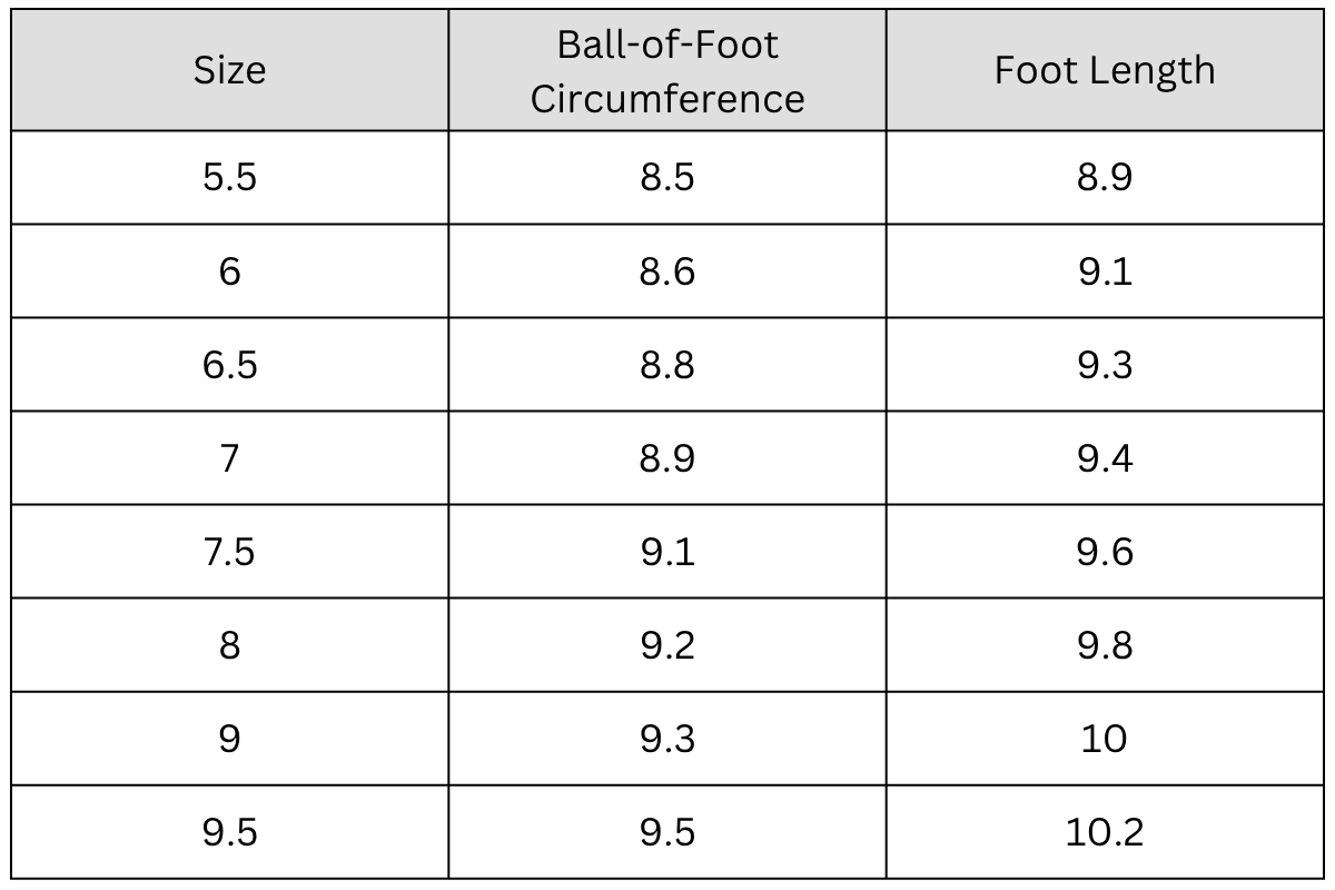 Size Chart (in):