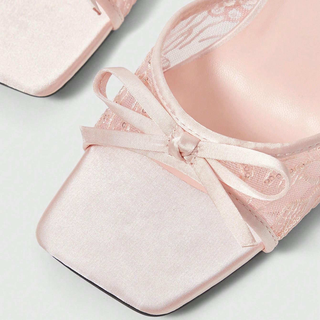 These mule sandals offer a refined combination of lace detailing and a structured design. The bow accent adds a distinctive element without overwhelming the overall style. Suitable for a range of formal occasions, they provide versatility while maintaining an elegant appearance that complements different outfit choices.