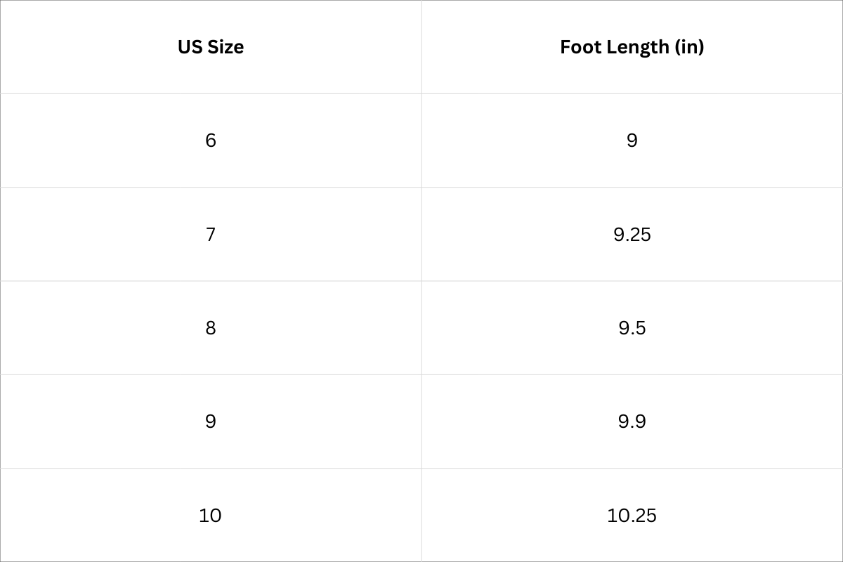 Note: If you are between sizes, we recommend sizing up for the best fit.